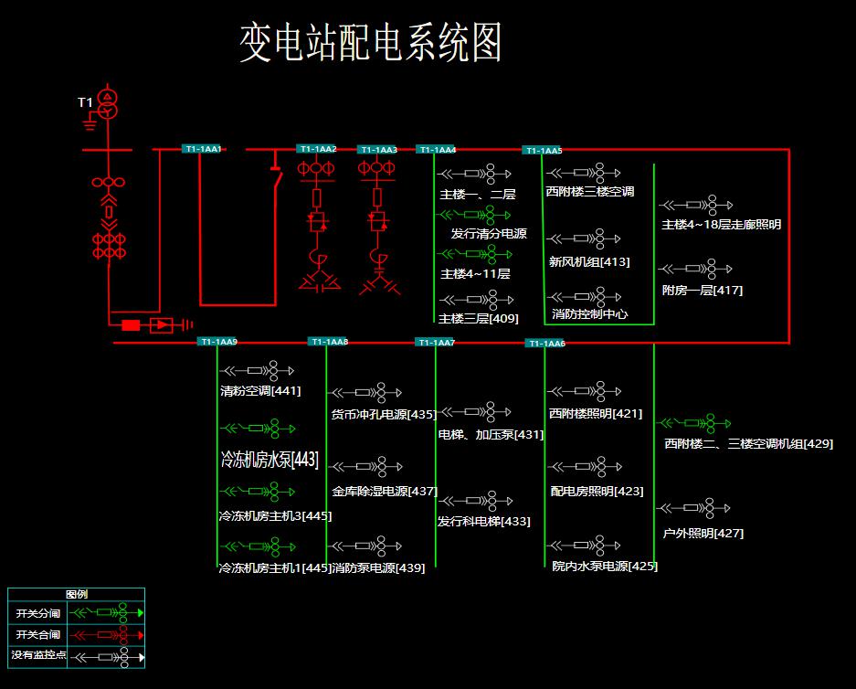 數據配電圖是系統根據客戶(hù)要求定制的系統圖,可以根據數據的變化實(shí)時(shí)展示設備數據和狀態(tài)。
